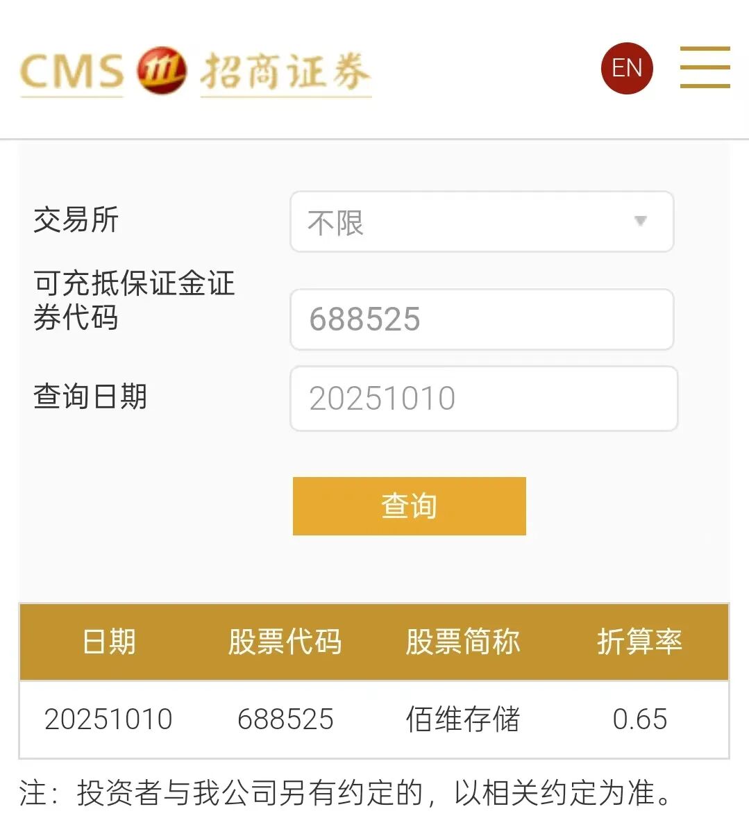 招商证券的官网则显示,中芯国际可充抵保证金证券折算率由0%上调至70%,而佰维存储则上调至65%。