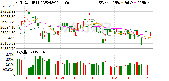 12月22日港股收盘:恒指涨0.43% 中芯国际领涨成分股
