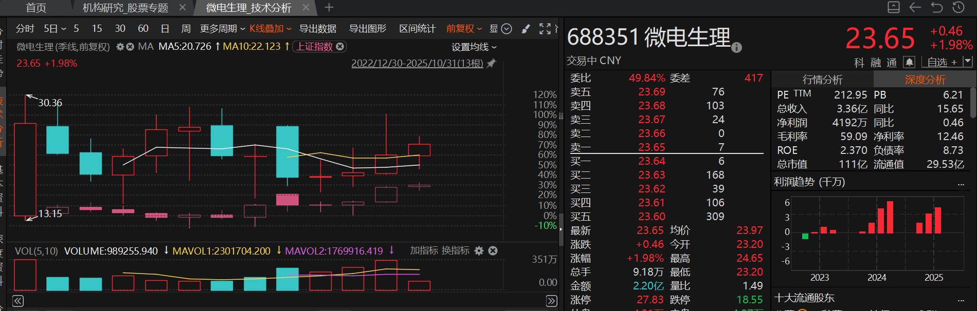微电生理是首次被葛卫东公开重仓。据介绍,这只2022年就挂牌的科创板公司是首个能够提供三维心脏电生理设备与耗材完整解决方案的国产厂商,并实现了“射频+冷冻+脉冲”三大主流消融能量产品的协同布局;但该个股在上市后长达三年时间横盘,做大箱体震荡。目前其历史高点,还要追溯到2022年上市首年。