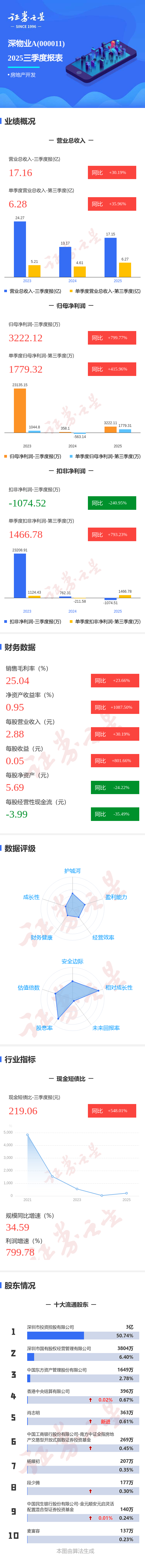 图解深物业A三季报:第三季度单季净利润同比增长415.96%