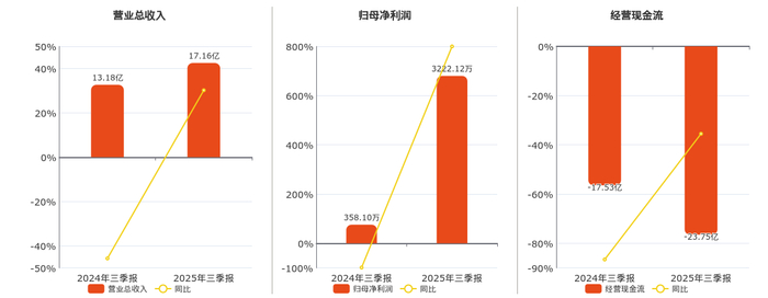 公司营业总收入为17.16亿元,较去年同报告期营业总收入增加3.98亿元,同比较去年同期上涨30.20%。归母净利润为3222.12万元,较去年同报告期归母净利润增加2864.02万元,同比较去年同期上涨799.78%。经营活动现金净流入为-23.75亿元。