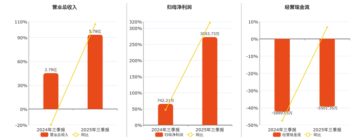 公司营业总收入为5.78亿元,在已披露的同业公司中排名第10。归母净利润为3093.73万元,在已披露的同业公司中排名第9。经营活动现金净流入为-5501.35万元,在已披露的同业公司中排名第9。
