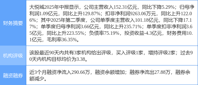 今日大悦城(000031)涨5.30%,收盘报3.38元。