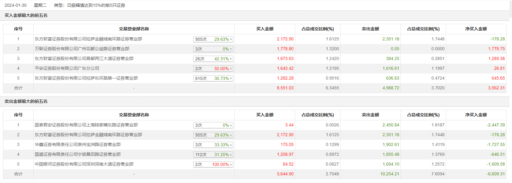 具体来看,知名游资现身龙虎榜,宁波桑田路(国盛证券有限责任公司宁波桑田路证券营业部)净卖出646.51万元。此外,国泰君安证券上海陆家嘴东路证券营业部、东方财富证券拉萨金融城南环路证券营业部分别卖出2450.84万元、2351.18万元;东方财富证券拉萨金融城南环路证券营业部、万联证券广州花都公益路证券营业部分别买入2172.90万元、1778.80万元。