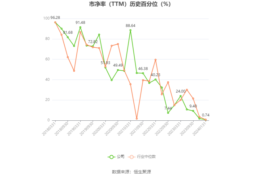 市盈率为负时,不显示当期分位数,会导致折线图中断。