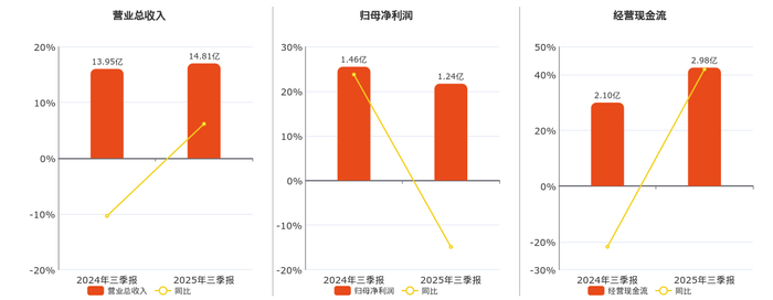 公司营业总收入为14.81亿元,较去年同报告期营业总收入增加8588.23万元,同比较去年同期上涨6.16%。归母净利润为1.24亿元,较去年同报告期归母净利润减少2176.77万元,同比较去年同期下降14.89%。经营活动现金净流入为2.98亿元,较去年同报告期经营活动现金净流入增加8794.39万元,同比较去年同期上涨41.93%。