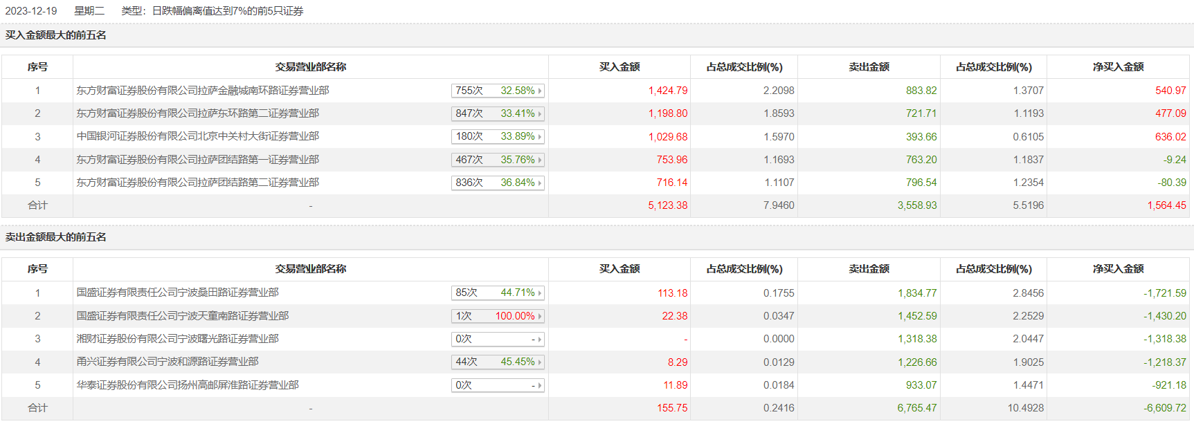具体来看,知名游资现身龙虎榜,宁波桑田路(国盛证券宁波桑田路证券营业部)、国盛证券宁波天童南路证券营业部分别卖出1834.77万元、1452.59万元;东方财富证券拉萨金融城南环路证券营业部、东方财富证券拉萨东环路第二证券营业部分别买入1424.79万元、1198.80万元。