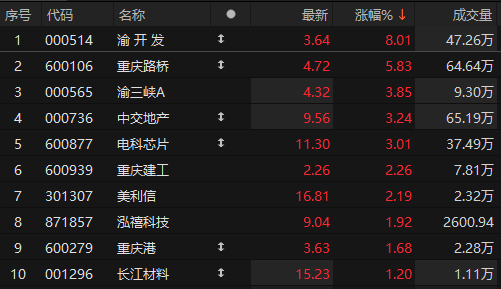 上证报中国证券网讯 9月20日,重庆本地股局部异动。截至11时13分,