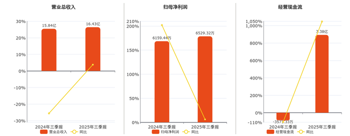 公司营业总收入为16.43亿元。归母净利润为6529.32万元,较去年同报告期归母净利润增加50.51万元,实现5年连续上涨,同比较去年同期上涨0.78%。经营活动现金净流入为3.38亿元,在已披露的同业公司中排名第7,较去年同报告期经营活动现金净流入增加3.75亿元。
