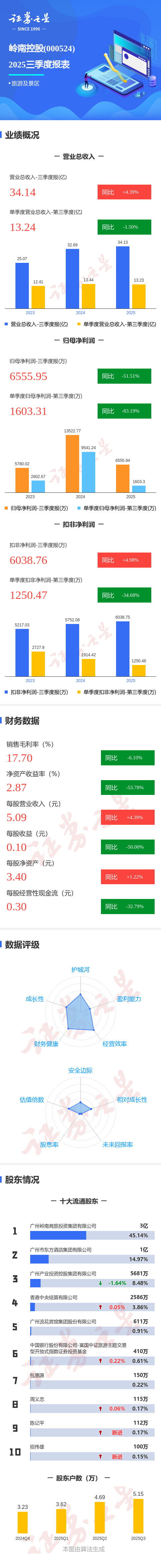 图解岭南控股三季报:第三季度单季净利润同比下降83.20%