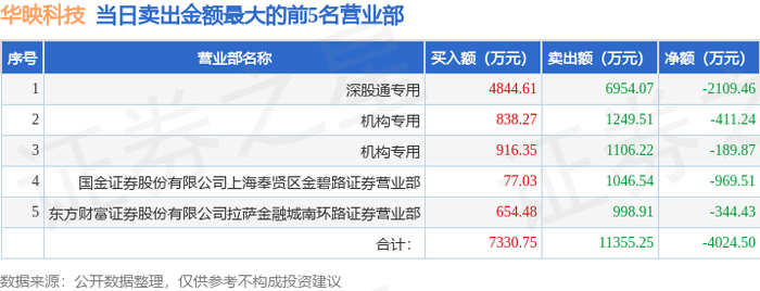 11月20日华映科技(000536)龙虎榜数据:机构净卖出601.1万元,北向资金净卖出2109.46万元