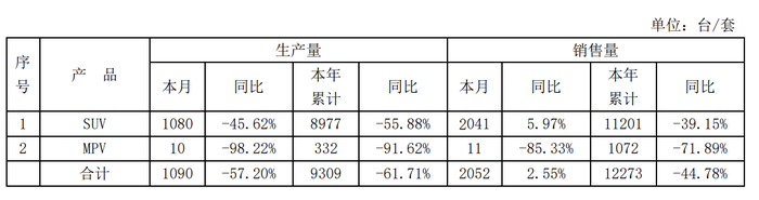 12月5日公告,2024年11月销量2052台,同比增长2.55%;本年累计销量12273台,同比下降44.78%。