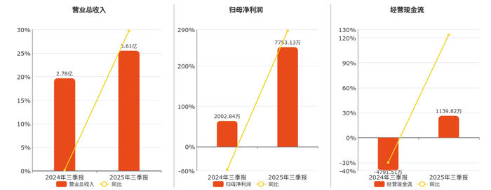 公司营业总收入为3.61亿元。归母净利润为7753.13万元。经营活动现金净流入为1139.82万元。