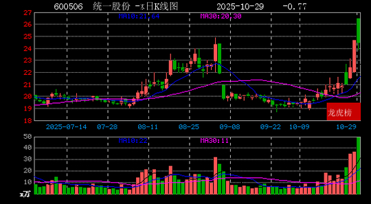 截止收盘,统一股份报收24.45元/股,涨幅-0.77%,成交量49万手,成交额12.35亿元,换手率33.21%。今日未涨停。
