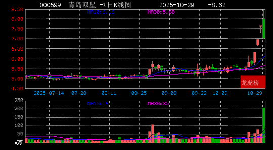 截止收盘,青岛双星报收7.0元/股,涨幅-8.62%,成交量207万手,成交额15.74亿元,换手率25.37%。今日未涨停。