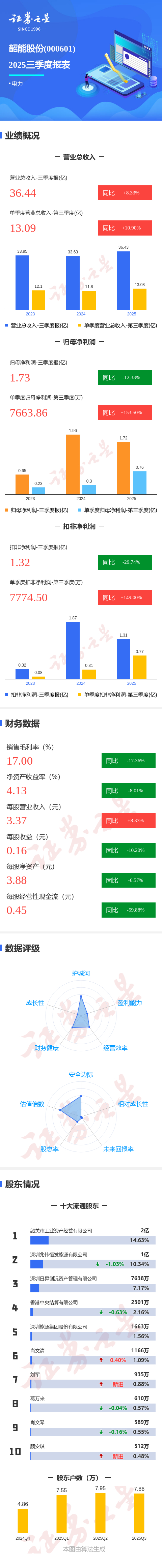 图解韶能股份三季报:第三季度单季净利润同比增长153.51%