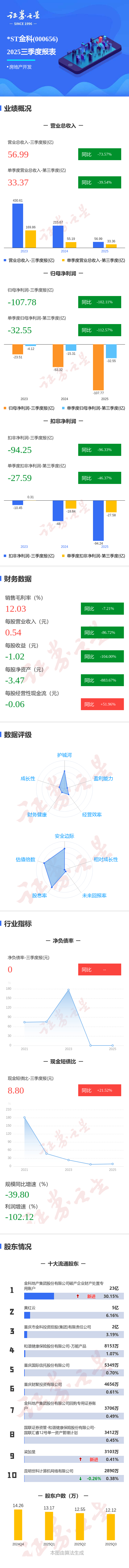 图解*ST金科三季报:第三季度单季净利润同比下降112.57%
