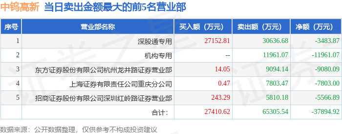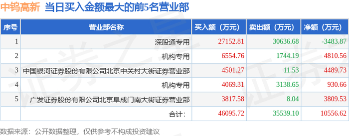 10月31日中钨高新(000657)龙虎榜数据:游资北京中关村上榜