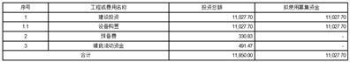 本项目总投资金额为11,850.00万元,拟使用募集资金投入11,027.70万元,具体投资规划如下: