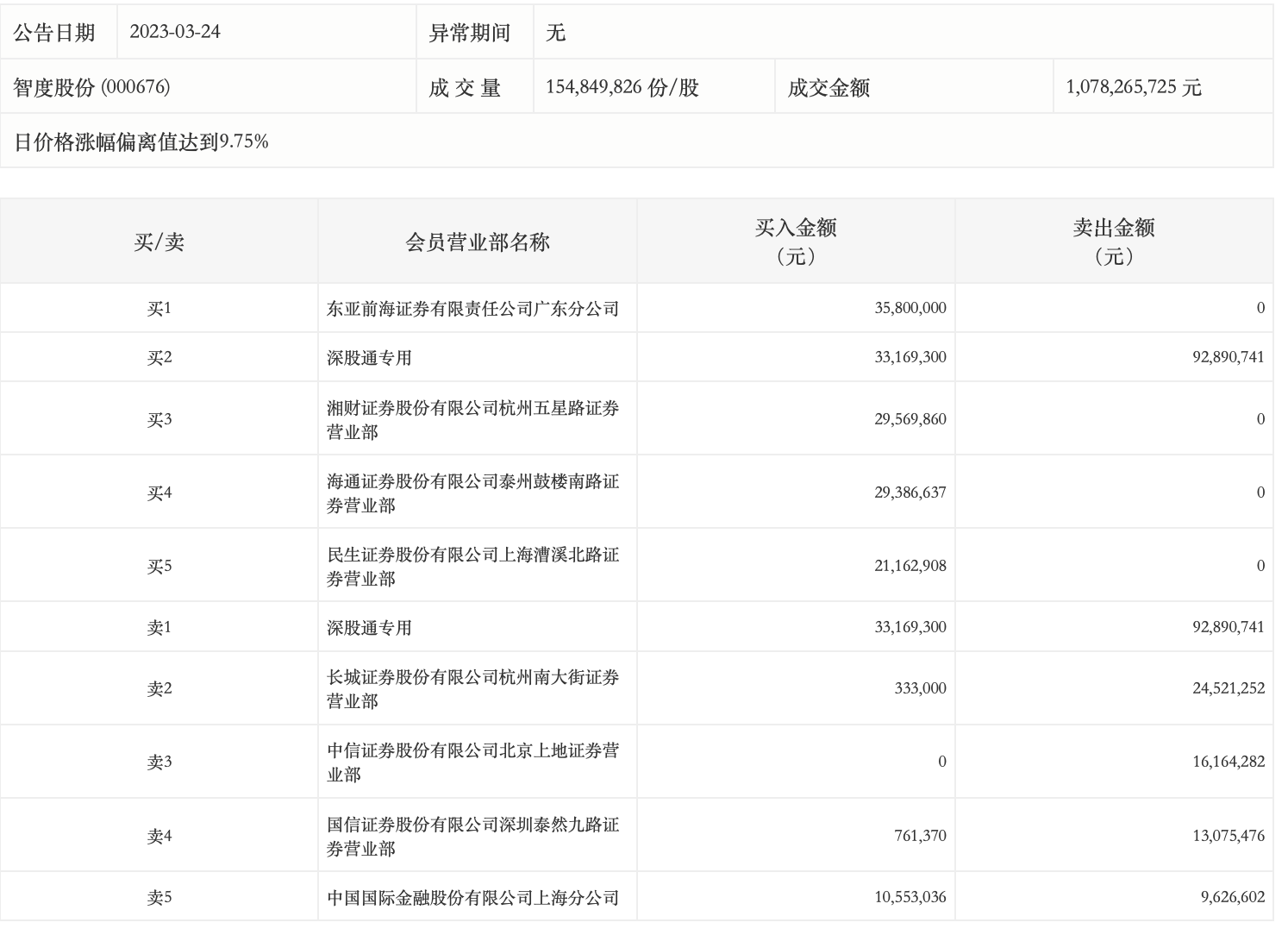 3月24日,智度股份今日涨停,龙虎榜数据显示,上榜营业部席位全天成交3.17亿元,占当日总成交金额比例为29.4%。其中,买入金额为1.61亿元,卖出金额为1.56亿元,合计净买入445.78万元。