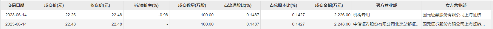 视觉中国6月14日大宗交易成交200万股,成交额4474万元,占当日总成交额的1.11%,成交均价22.37元,较市场收盘价22.48元折价0.49%,其中最高成交价22.48元,最低成交价22.26元。