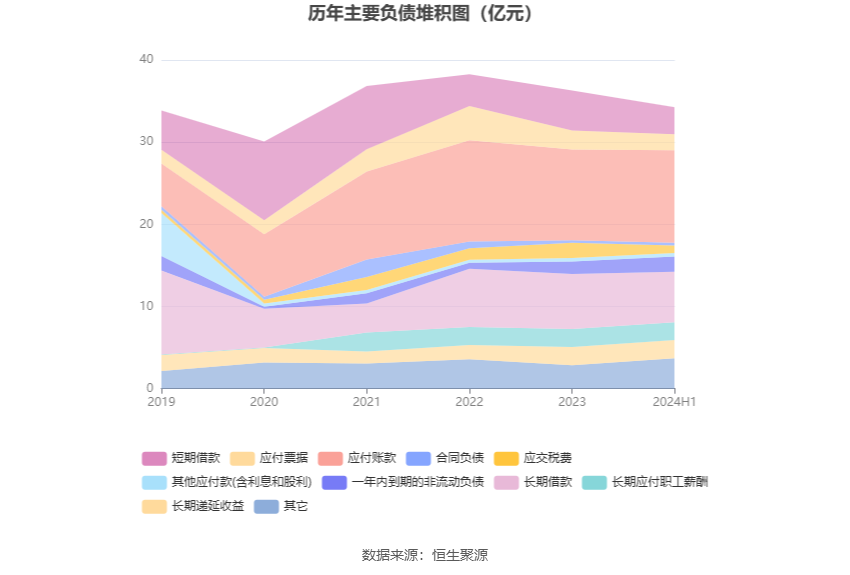 负债重大变化方面,截至2024年上半年末,公司短期借款较上年末减少32.08%,占公司总资产比重下降0.82个百分点,主要系报告期部分子企业偿还金融机构短期借款;应交税费较上年末减少50.96%,占公司总资产比重下降0.51个百分点;应付职工薪酬较上年末增加522.03%,占公司总资产比重上升0.47个百分点;长期借款较上年末减少8.32%,占公司总资产比重下降0.24个百分点,主要系报告期部分长期借款根据还款时间转至一年内到期的非流动负债。