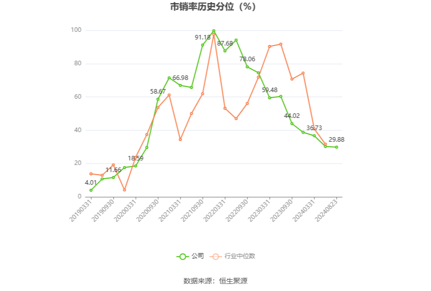 2024年上半年,公司期间费用为6.76亿元,较上年同期减少9617.56万元;但期间费用率为27.81%,较上年同期上升9.91个百分点。其中,销售费用同比下降5.44%,管理费用同比下降2.17%,研发费用同比下降29.21%,财务费用同比下降61.01%。
