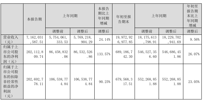 北方铜业2025年三季度财报主要数据。(图片来源:深圳证券交易所官网)据财报内容,年初至三季度末,公司实现营业收入199.73亿元,同比增长9.56%;归母净利润为6.89亿元,同比增长26.07%;扣非归母净利润为6.80亿元,较上年同期增长23.05%。