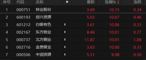 A股小金属概念掀涨停潮 锌业股份、创兴资源等多股涨停