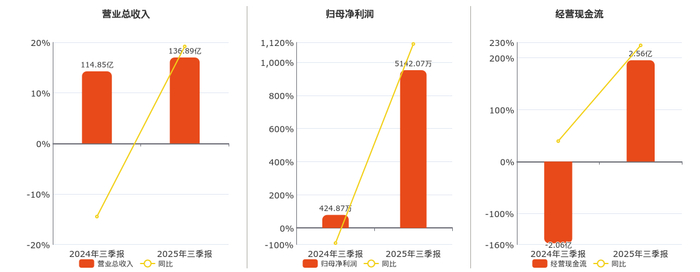 公司营业总收入为136.89亿元。归母净利润为5142.07万元。经营活动现金净流入为2.56亿元。