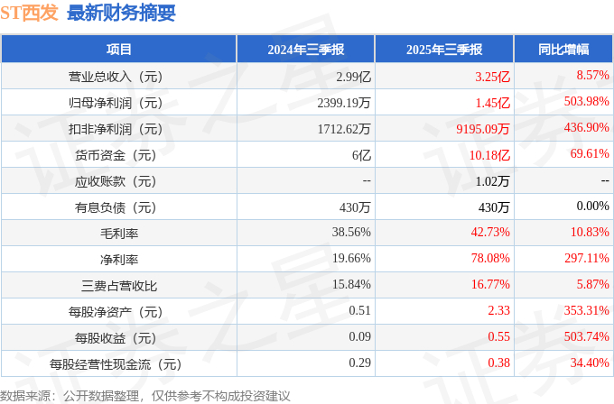 ST西发(000752)2025年三季报简析:营收净利润同比双双增长,盈利能力上升