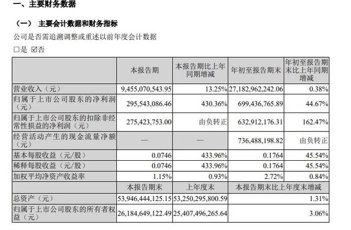 新兴铸管:第三季度归母净利润2.96亿元,同比增长430.36%
