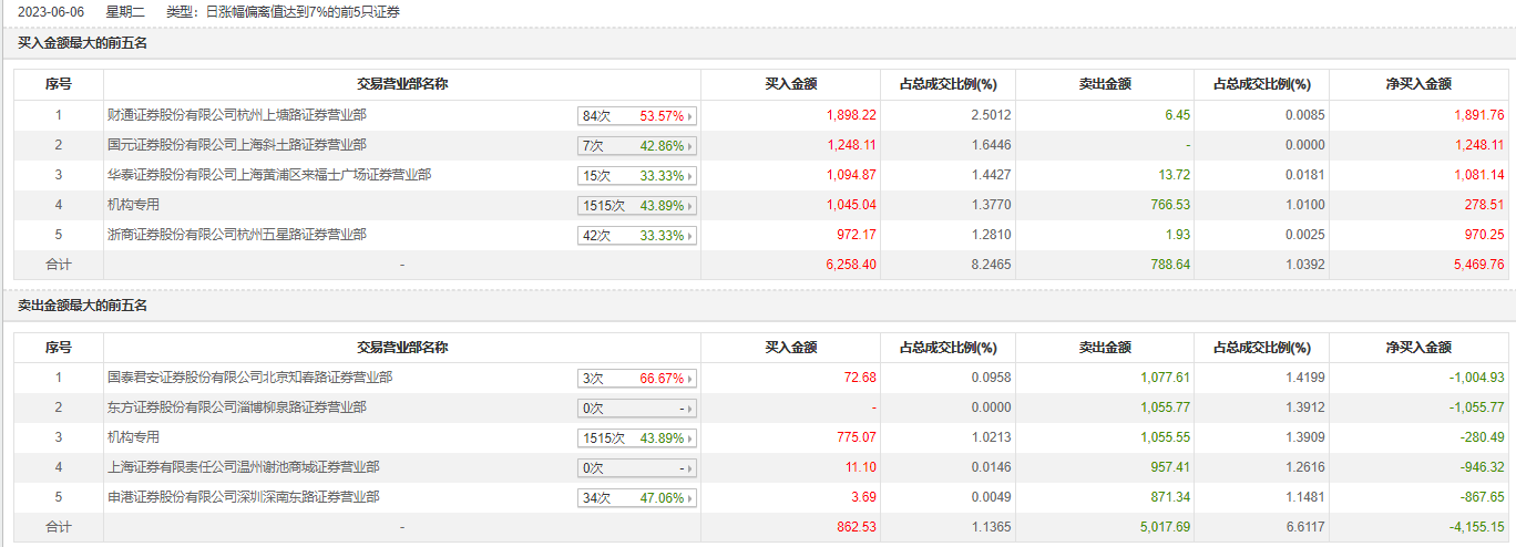 具体来看,机构买入1820.1万元,卖出1822.08万元,合计净卖出1.98万元。此外,财通证券杭州上塘路证券营业部、国元证券上海斜土路证券营业部分别买入1898.22万元、1248.11万元;国泰君安证券北京知春路证券营业部、东方证券淄博柳泉路证券营业部分别卖出1077.61万元、1055.77万元。