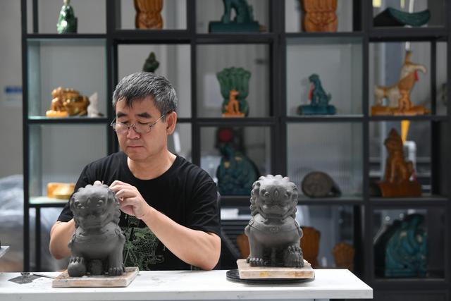 7月7日,展示在琉璃文创园里的文创产品。新京报记者 王颖 摄“我们过去是活多人少,边学边干,现在不做订单了,烧制的工作也少了,年轻人怎么学习?”2023年3月,就是窑火重燃之后,赵长安有了一个新的想法,复制太和殿上的“正吻”,以此作为传承技艺的一次学习。