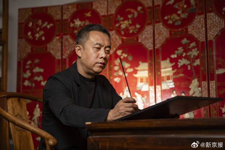 柏群正在制作金漆镶嵌作品。新京报记者 王远征 摄金漆镶嵌以木胎成型、髹漆,然后在漆底上运用镶嵌、彩绘、雕填、堆古罩漆、刻灰、平金开彩、断纹、刻漆、金银、罩漆等装饰技法,是一门复杂而精密的手艺,每一个环节,都需要大量的练习,“同样一片叶子,老师傅画出来只有2毫米,你照着画出来却是5毫米,这就不行,说明没练会。”柏群说,“过去的手艺人入行后,没出师之前很多年收入都不高,就是因为学徒期间技艺的掌握需要大量的时间。”