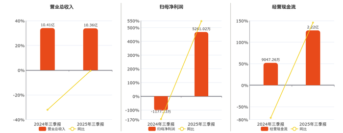 公司营业总收入为10.36亿元,在已披露的同业公司中排名第52。归母净利润为5261.02万元,较去年同报告期归母净利润增加6438.24万元。经营活动现金净流入为2.22亿元,在已披露的同业公司中排名第38,较去年同报告期经营活动现金净流入增加1.32亿元,同比较去年同期上涨145.63%。