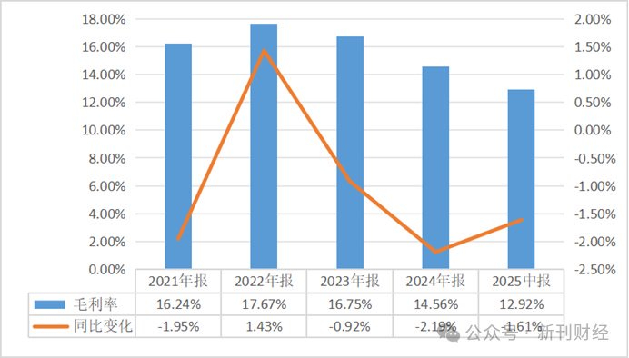 更令人担忧的是,公司毛利率已连续三年下滑,从2022年的17.67%降至2025年上半年的12.92%,创2013年以来的新低。这一指标直接反映了公司在产品竞争力、成本控制方面的持续弱化。