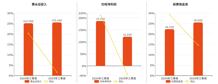 公司营业总收入为219.18亿元,在已披露的同业公司中排名第4,较去年同报告期营业总收入增加3.39亿元,实现2年连续上涨,同比较去年同期上涨1.57%。归母净利润为10.23亿元,在已披露的同业公司中排名第6,较去年同报告期归母净利润减少5.52亿元,同比较去年同期下降35.03%。经营活动现金净流入为39.83亿元,在已披露的同业公司中排名第3,较去年同报告期经营活动现金净流入增加5.06亿元,实现2年连续上涨,同比较去年同期上涨14.56%。