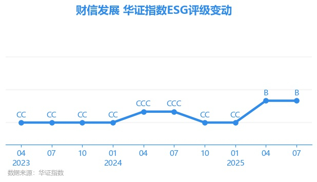 日前,华证指数公布了新一期(2025年7月31日)的ESG评级结果,财信发展(000838.SZ)获得B评级(华证指数评级为C起至AAA九档,C为最低档,AAA为其最高一级评级/AA为其第二档),上一期(2025年4月30日)ESG评级为B。本期ESG评级在102家房地产管理和开发行业A股上市公司中排名第70(上一期排名第77)。