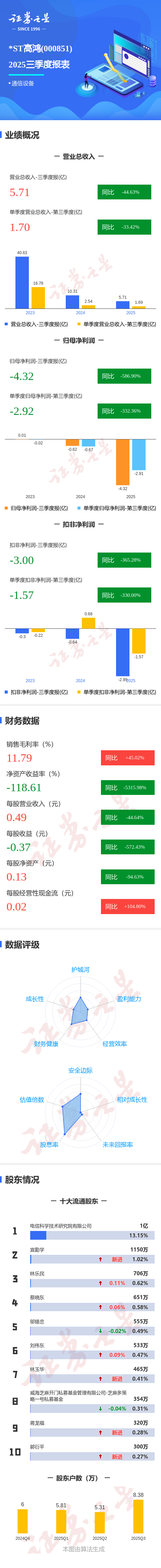 图解*ST高鸿三季报:第三季度单季净利润同比下降332.36%