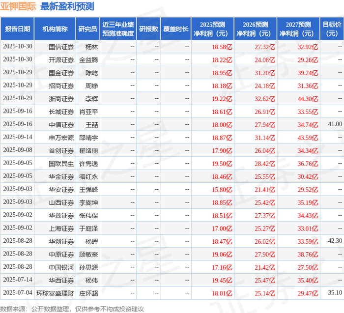 中国银河证券股份有限公司孙思源,王鹏近期对亚钾国际进行研究并发布了研究报告《25Q3盈利稳中有增,静待新产能投放》,给予亚钾国际买入评级。