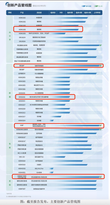 按所长规划的销售峰值,这五款药中排名第三的应当是减肥药HDM1005,这个1005是GLP-1R/GIPR 双靶点,目前正在开展体重管理适应症Ⅱ期临床试验,已于 2025 年 4 月完成Ⅱ期全部受试者入组,预计2025年Q4 进入Ⅲ期临床研究,此外,糖尿病适应症Ⅱ期临床试验已于2025 年7 月完成全部受试者入组。