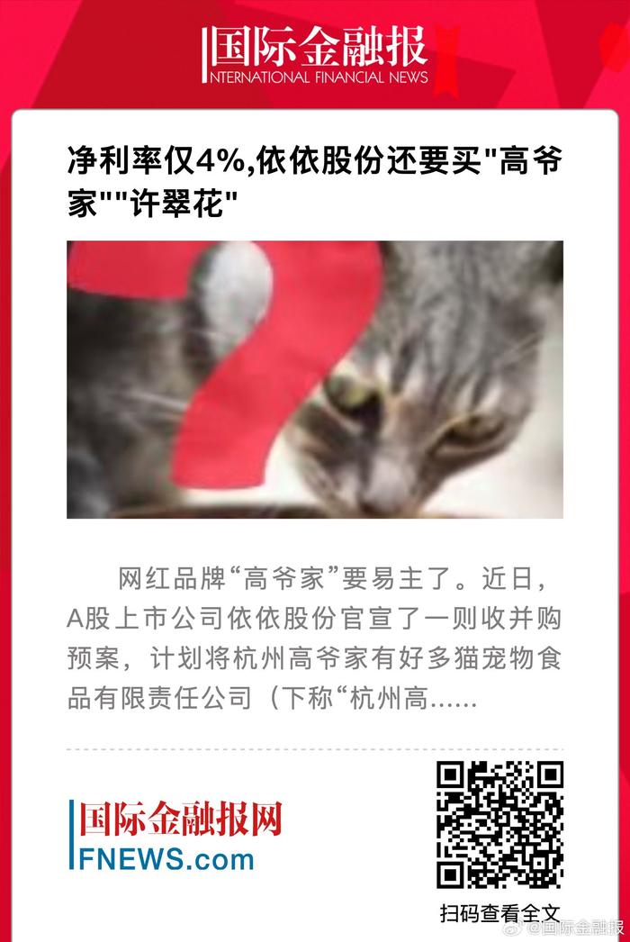 依依股份净利率4%仍收购高爷家许翠花