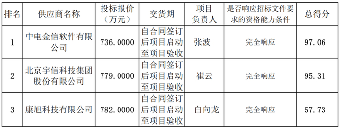 2025 年 12 月 9 日发布中标结果,中电金信软件有限公司 736 万元(中)。