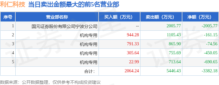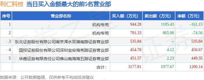 12月9日利仁科技(001259)龙虎榜数据:机构净卖出1376.41万元