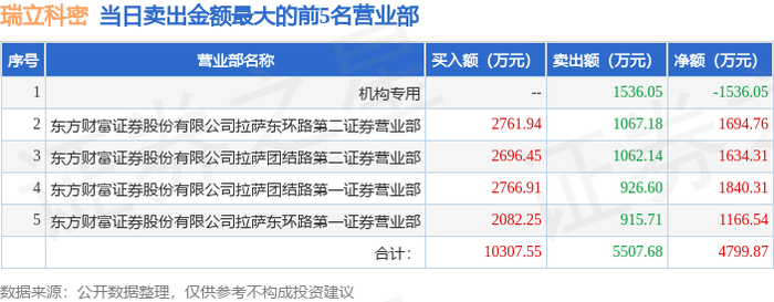 9月30日瑞立科密(001285)龙虎榜数据:机构净卖出1536.05万元