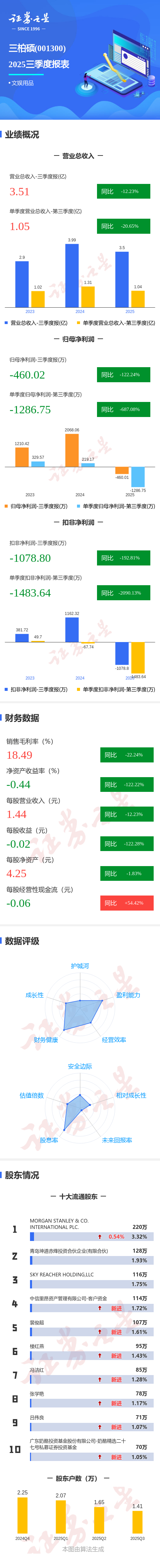图解三柏硕三季报:第三季度单季净利润同比下降687.09%