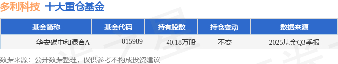 持有多利科技最多的基金为华安碳中和混合A,目前规模为1.54亿元,最新净值1.1479(10月29日),较上一交易日上涨1.52%,近一年上涨36.18%。该基金现任基金经理为蒋璆。