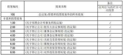 1、议案名称及提案编码表