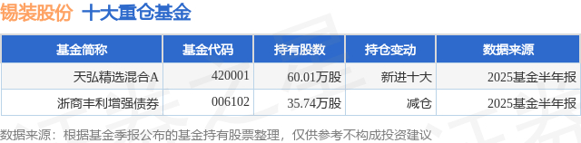 重仓锡装股份的公募基金请见下表: